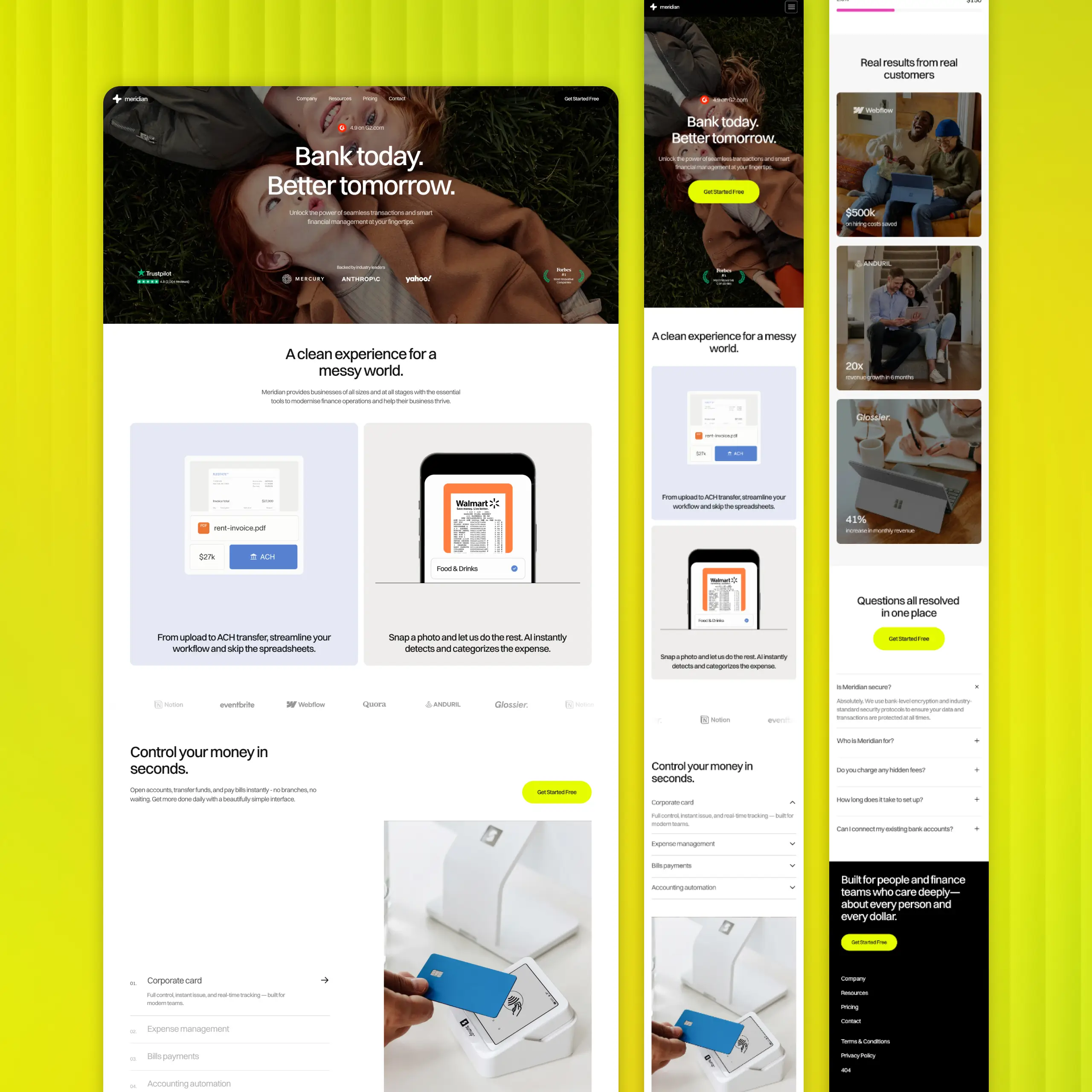 A clean experience for a messy world. Meridian provides businesses of all sizes and at all stages with the essential tools to modernise finance operations and help their business thrive.