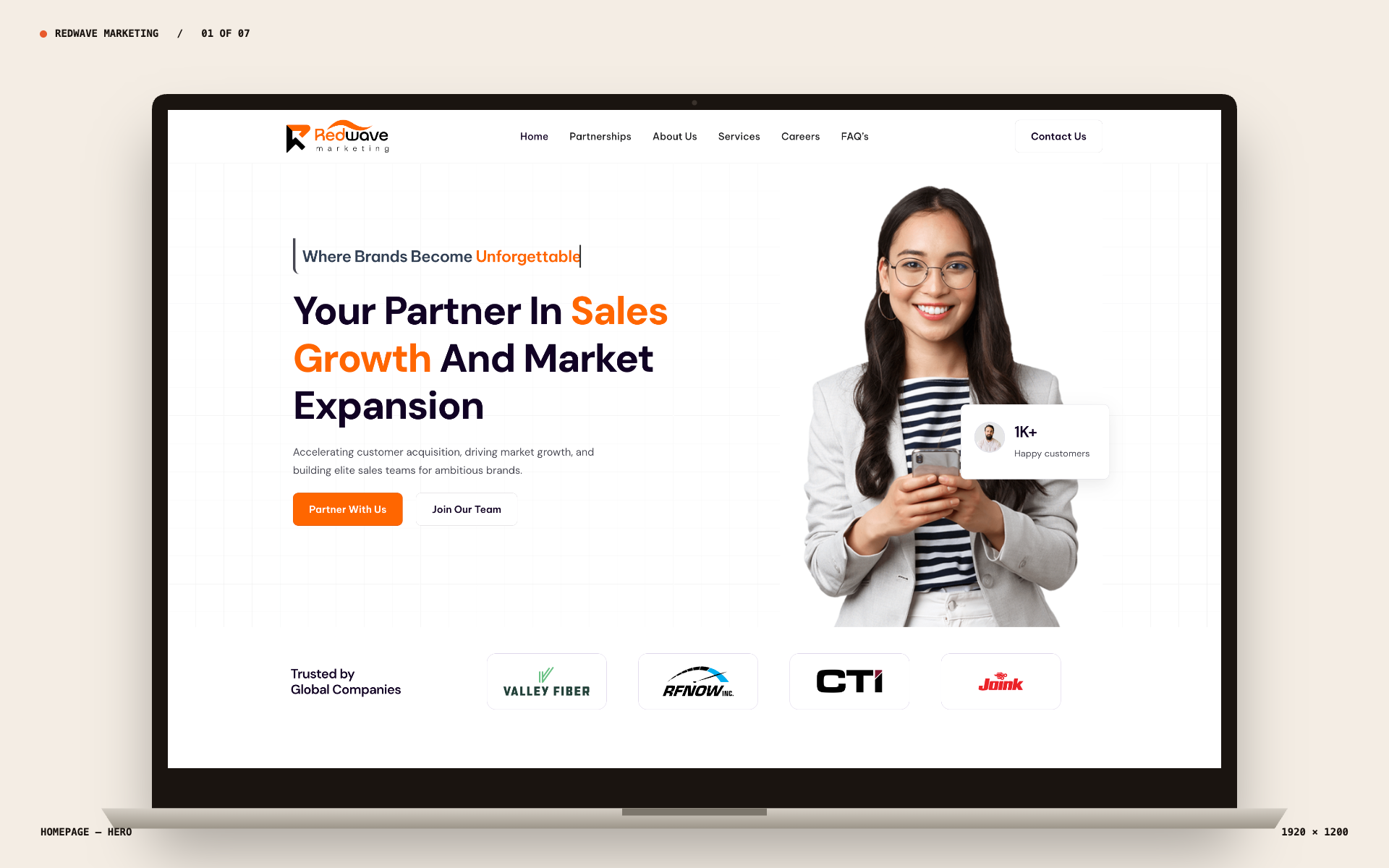 Redwave Marketing helps brands grow through face-to-face campaigns, B2B outreach, client acquisition programs, and sales team building. The website had to turn that broad offer into a simple story: what they do, who they help, why they are credible, and how to start a partnership conversation.